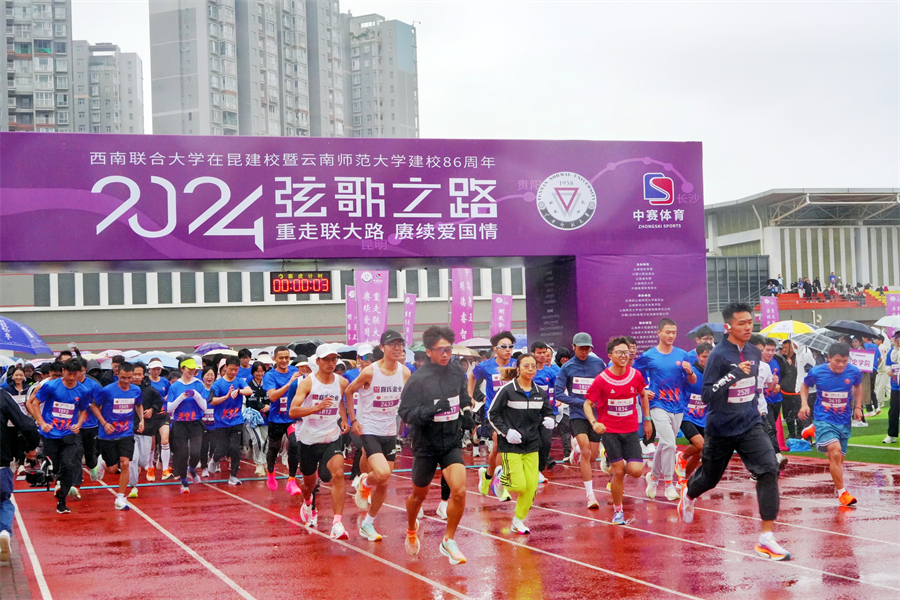 在西南联合大学在昆建校暨云南师范大学建校86周年之际,11月2日,“弦歌之路——重走联大路·赓续爱国情”校园跑活动在云南师范大学呈贡校区举行。校园跑全程5.6公里,自西区田径场开始,途经红烛南路、清华路、学海路、师林路、清华路、红烛北路、3号门,环绕学校一周后再返回西区田径场。