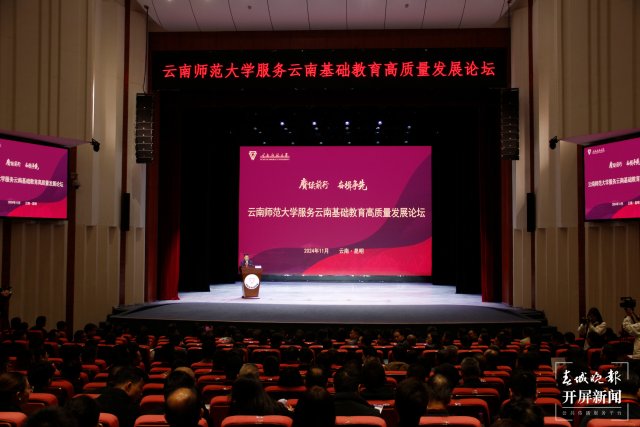 论坛上,云南师范大学校长胡金明代表学校作《云南师范大学服务云南基础教育高质量发展工作报告》。他说,云南师范大学作为西南联大师范学院的传承者,始于服务云南教育需求、兴于服务云南教育发展,扎根祖国边疆,矢志教育兴滇报国。学校在充分发挥学校教师教育的主责和基础教育资源优势的基础上,创新性地提出服务云南基础教育发展的“151战略行动计划”,旨在推动师范高等教育与基础教育的协同发展,谱写教育强国、教育强省建设的云南新篇章。“151战略行动计划”坚持以高等教育、基础教育“双教协同”发展战略为引领。以“卓越教师培育工程,建好基础教育师资人才库、附属学校提质领航工程,建强基础教育服务站、数智基教平台建设工程,建好教师教育数智网、拔尖创新人才培养工程,建强教师教育动力源、基础教育发展大调查工程,打造基础教育智慧库”5大工程为支撑,精心打造云南基础教育高质量发展论坛这一品牌。他表示,学校将加快建设具有高水平师范大学特质的高质量基础教育体系,与社会各界合作,合力深化基础教育供给侧改革、合力构建大中小协同新范式、合力推进数字化赋能基础教育发展,探索“双教协同”助推云南基础教育高质量发展、助推教育强省建设的云师方案,努力在服务教育强国、教育强省建设的新征程中,作出新的更大贡献。