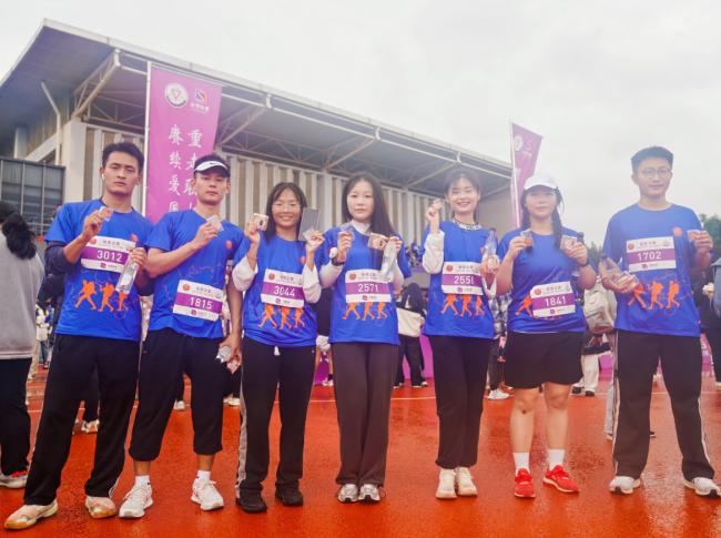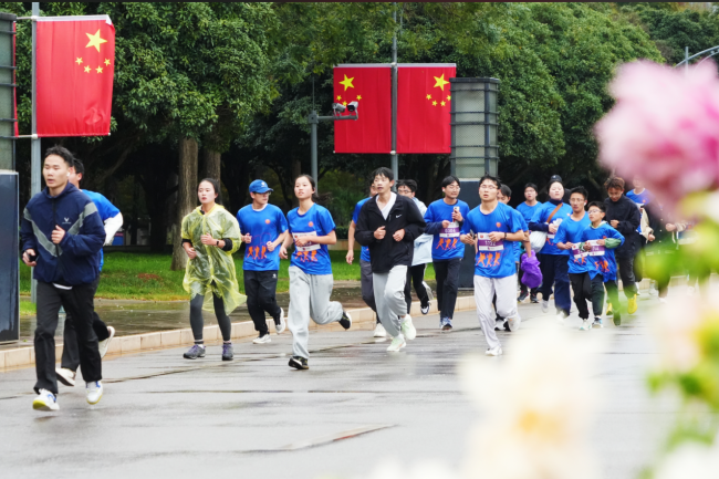此时天空中下着小雨,但运动员们精神焕发、信心满满,大家在雨中热情奔跑,展现了新时代青年的活力与风采。“今天我的心情无比激动。这已经是我第二次参加校园跑活动了。虽然跑步时下着小雨,气温也比较低,但学校贴心地为我们准备了很多,让我们能更好地享受跑步的过程。”第一个冲线的同学王庭辉激动地说。