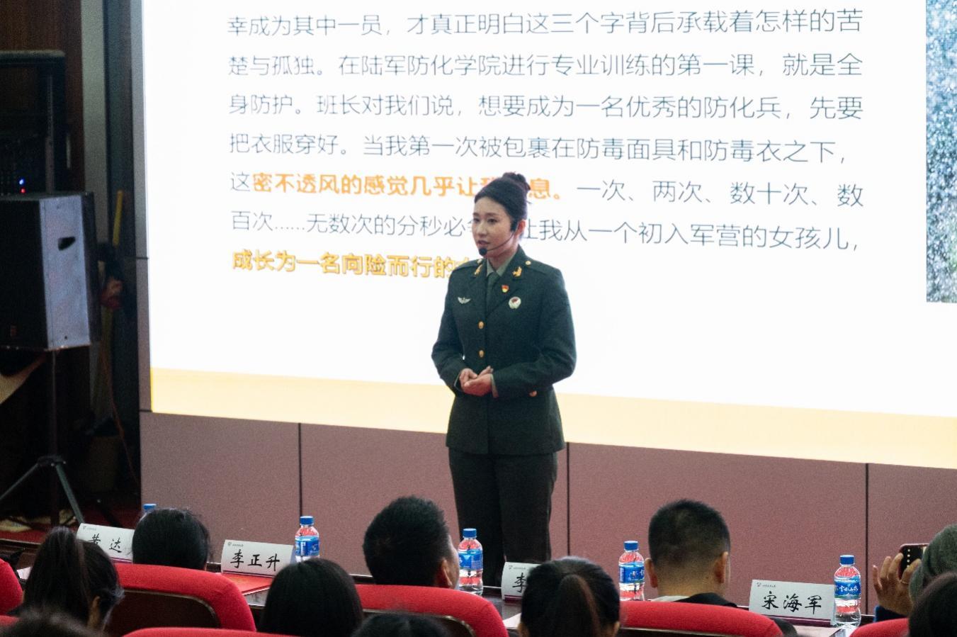 云南师范大学历史学院退役士兵宫砚琪同学以《请党放心强国有我》为主题进行宣讲,用自己的亲身经历践行着“请党放心,强国有我”的庄严承诺,生动诠释了新时代青年的责任、使命与担当。