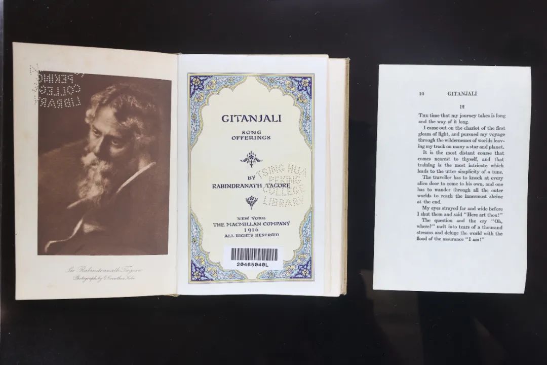 2024年4月20日,清华大学图书馆收藏的纽约1916年英译本泰戈尔诗集《吉檀迦利》。中新社记者 易海菲 摄