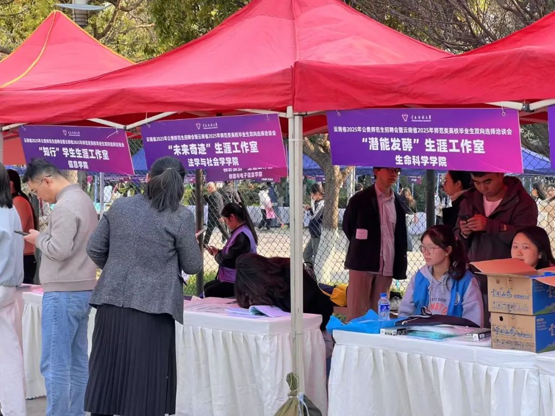 除此之外,云南师范大学“彗管未来”“‘物彩缤纷”“知行”等20个生涯工作室来到招聘会现场,为毕业生提供心理咨询、简历优化和面试技巧等职业指导。