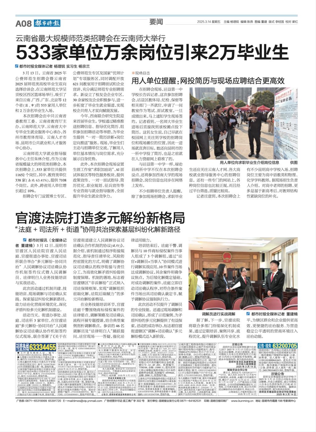 上一条:云南网 2025-03-14 533家单位带来1.1万余个岗位 云南省2025年公费师范生招聘会举行 下一条:昆明日报 2025-03-14 全省最大规模师范类招聘会举行