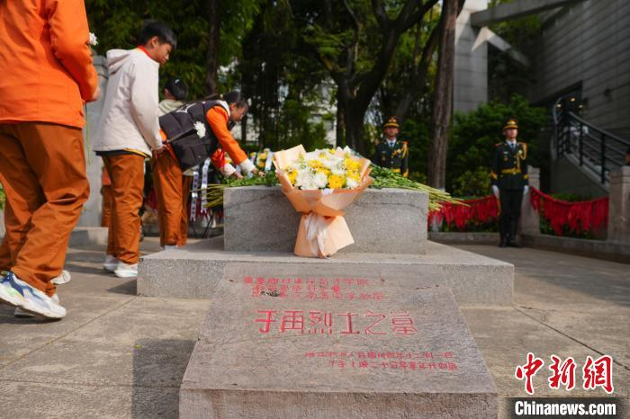4月3日,云南昆明,市民向烈士敬献鲜花。当日,社会各界人士齐聚云南师范大学,在西南联大旧址的 "一二·一" 四烈士墓前,举行 "清明祭英烈" 活动,共同追思为民族独立、人民解放而献出生命的烈士们。中新社记者 刘冉阳 摄