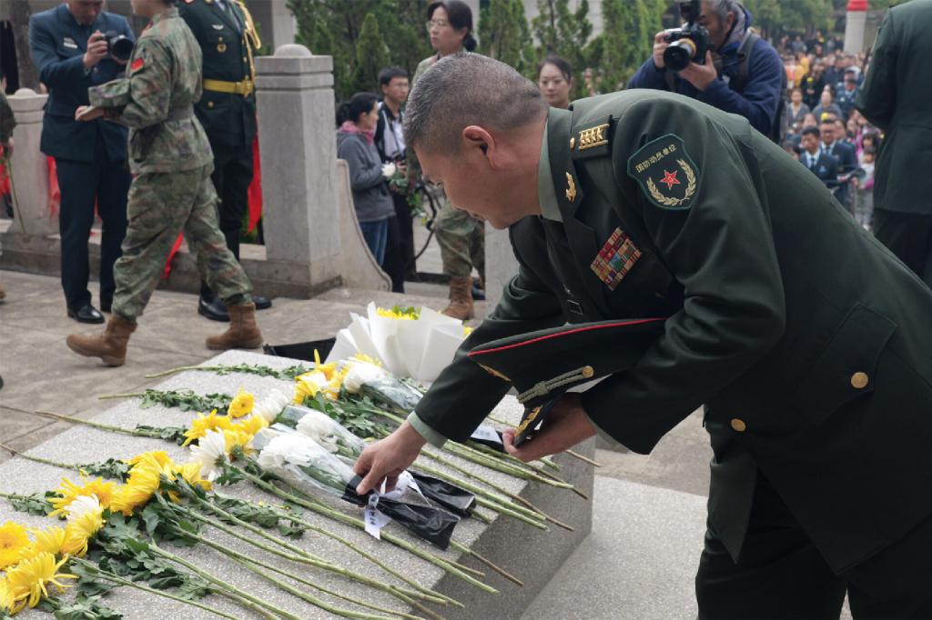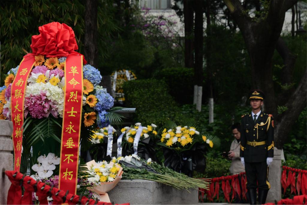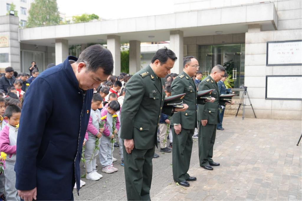 随后,昆明警备区、昆明市退役军人事务局、昆明铁路公安局、昆明市松华坝水库管理处、滇池学院、富滇银行昆明岔街支行、云南师范大学幼儿园、云南师范大学附属七彩云南幼儿园、云南师范大学附属呈贡幼儿园、云南师范大学实验中学、昆明市呈贡区云大附中呈贡中学、昆明市五华区莲华小学、南站小学、西南联大博物馆全体教职工、西南联大博物馆学生志愿者讲解队等单位依次缓步上前,瞻仰烈士墓并向烈士敬献鲜花。