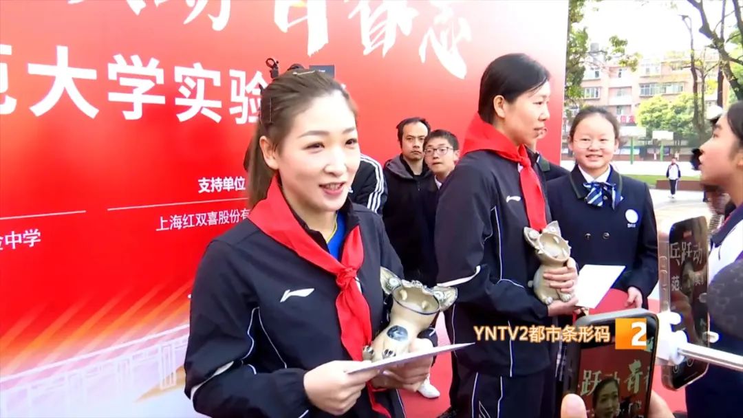 上午9点,国球奥运冠军马龙、许昕、刘诗雯、李晓霞走进云南师范大学实验中学,受到了师生们的热烈欢迎。学生代表向四位奥运冠军赠送了同学们手塑烧制的云南非遗瓦猫,以及学生们写给奥运冠军的书信。