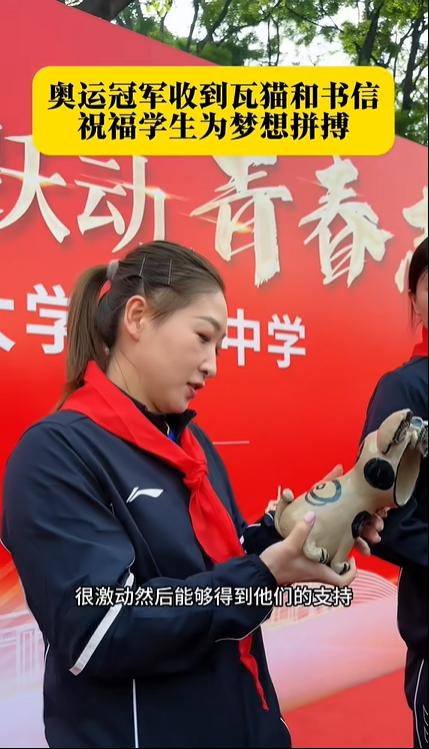 云南师范大学实验中学老师:“把这个瓦猫送给四位奥运冠军,希望你们平安、健康、吉祥如意。”