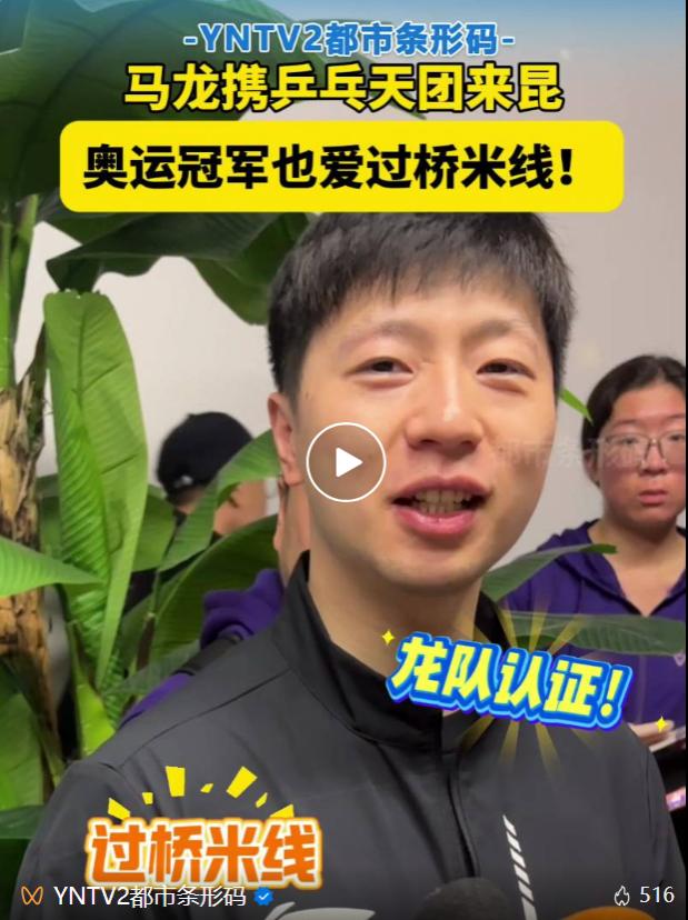 乒乓球奥运冠军 马龙:“云南有很多小朋友喜欢打乒乓球,他们今天上午非常热情地欢迎我们,我也祝福他们,希望他们能够在乒乓球这条道路上越打越好。”