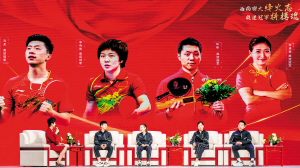 在云南师范大学呈贡校区,4名奥运冠军讲述他们的追梦故事,分享如何用榜样的力量引领自己走出低谷,做更强的自己,为青年学子上了一堂关于爱国、拼搏、追求理想的思政课。4名国球冠军组队与由北京大学、清华大学、南开大学和云南师范大学乒乓球队队员组成的西南联大联队,以及由3名乒乓球爱好者组成的爱好者联队带来精彩表演赛。