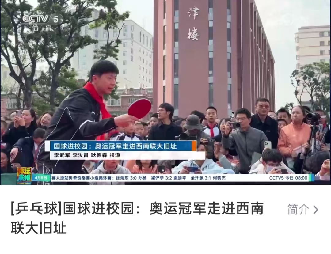 北京时间4月8日,乒乓球奥运冠军马龙、许昕、李晓霞、刘诗雯等一行来到云南昆明,先后走进云南师范大学、西南联大旧址等地,与广大师生交流互动。