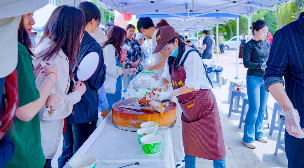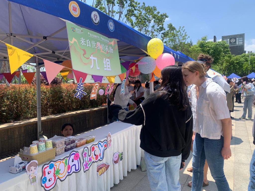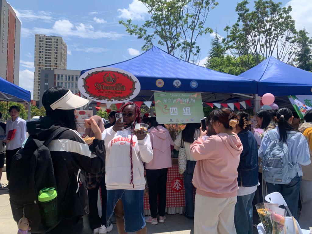 除了舞台上精彩的演出,在“来自味蕾的礼物:美食文化节”的摊位上,东南亚的留学生也占了大比例,他们摆出了来自本国的美食,热情邀请前来参与活动的师生品尝。来自泰国的宋莉莉是第四组美食摊位上的“推销员”,忙前忙后用流利的中文介绍着家乡的美食:“这是泰国的绿奶茶、这是泰奶酱烤吐司,都很泰国。”宋莉莉之所以选择来云南师范大学留学是因为希望把中文学得更透彻,她介绍,他们班的国际学生大都来自泰国、缅甸、老挝、越南等东南亚国家,也有个别来自俄罗斯等欧美国家,大家都是因想有更好的语言环境而选择了留学。“我们都认为学好中文是最正确的选择。”
