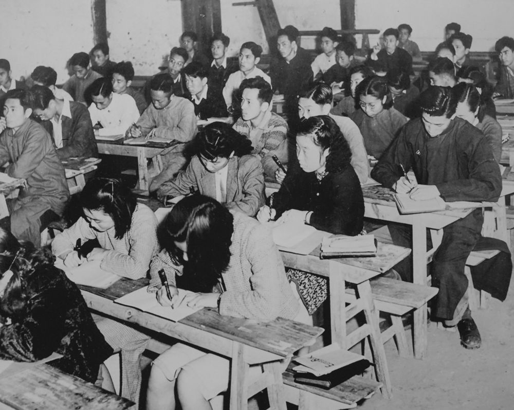 这是西南联大学生在上课(翻拍照片)。新华社记者 陈欣波 摄