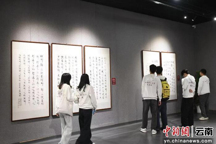 中新网云南新闻10月28日电(韩帅南)10月27日,由艾维美术馆主办、云南师范大学承办的“前进的号角——《聂耳音乐作品》劳伟专题书法展”在云南师范大学校史馆开展。