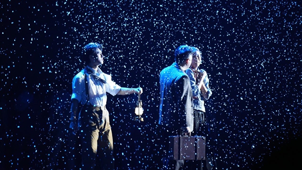序章《联大丰碑》以西南联大纪念碑为引,带领现场师生跨越时空,回顾西南联大波澜壮阔、动人心弦的历史。《薪火南迁》篇章中,西南联大学子紧握拳头激昂呐喊,挥舞旗帜。风雨泥泞,湘黔滇旅行团师生背着行囊,相互搀扶,跨越山海、守护文脉。