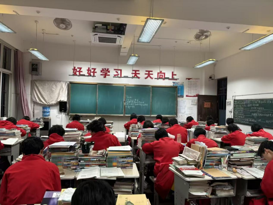 天未亮,66班的学生已经开始早读(2月17日摄)