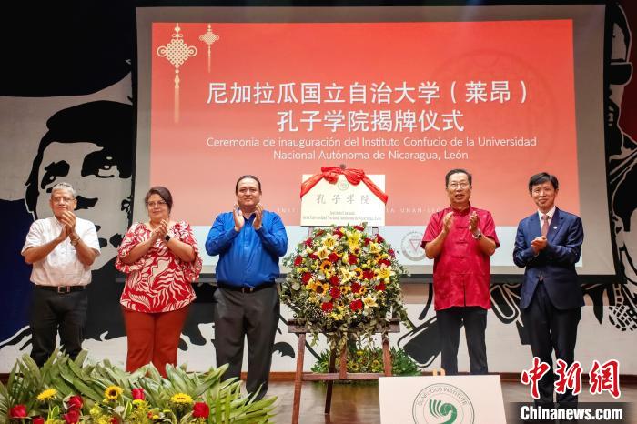 中新网昆明6月26日电(记者韩帅南)记者6月26日从云南师范大学获悉,当地时间6月25日,该校与尼加拉瓜国立自治大学合作共建莱昂孔子学院揭牌仪式在尼加拉瓜莱昂举行。