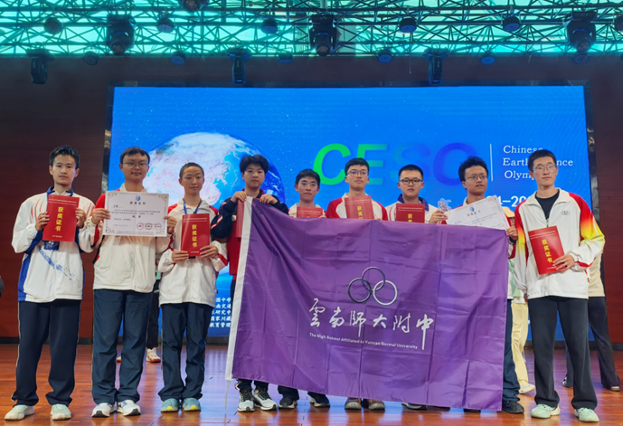 今年是云师大附中第二次参加地科奥赛。去年学校4人参赛取得四块金牌,2人进入国家集训队,实现了云南赛区在该项赛事上的金牌零突破。今年学校成绩又有新的突破:初赛中有25人获省一等奖,占全省三分之一,10人入选省队,是全国入选决赛人数最多的学校。决赛获得5金2银3铜的好成绩,奖牌总数和金牌总数全国第一,张俊宇同学取得全国第三的好成绩,张俊宇、于阅(第31名)和朱子言(第51名)三位同学进入国家集训队,最终张俊宇同学成功入选国家队。