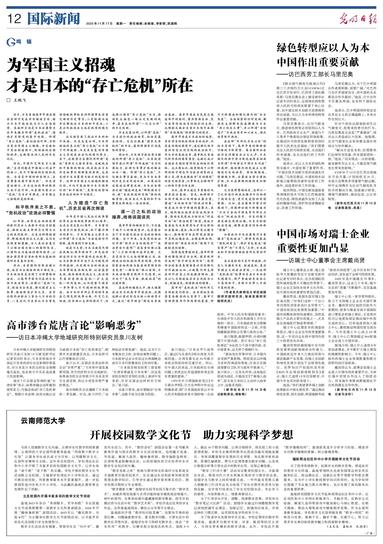 高质量教育答卷|光明日报 2025-11-17 云南师范大学:开展校园数学文化节 助力实现科学梦想